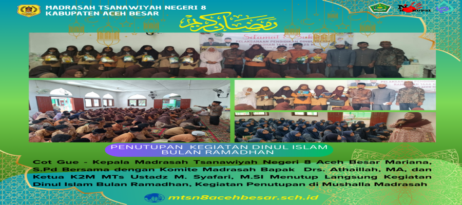 MTsN 8 Aceh Besar menggelar acara Penutupan Kegiatan Dinul Islam Bulan Ramadhan yang dirangkaikan dengan Khataman Qur’an dan Kegi