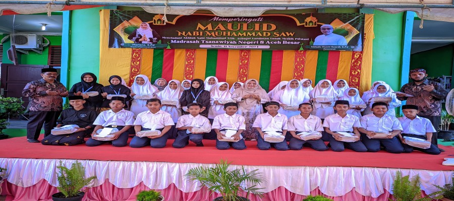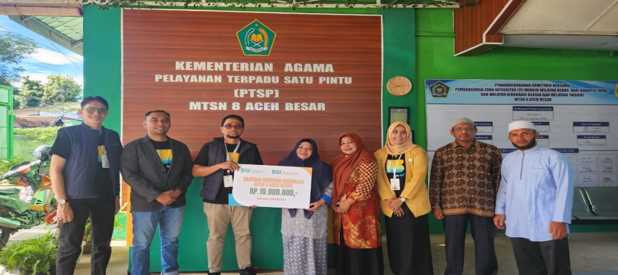MTsN 8 Aceh Besar menggelar program Lebaran Yatim dan Penyandang Disabilitas secara simbolis di madrasah, dengan membagikan 36 Paket bingkisan kepada