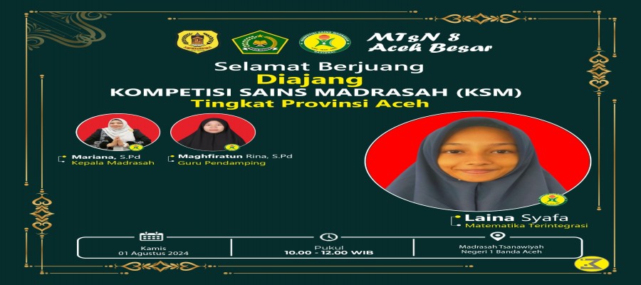 Siswa MTsN 8 Aceh Besar Naura Safani berhasil meraih juara II pada Olimpiade Bahasa Arab (OBA) Tingkat Provinsi Tahun 2025, yang digelar di Band